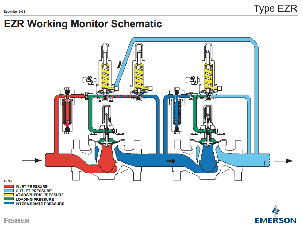 Utilizing regulator monitor systems is another means of overpressure protection for natural gas applications. A monitor system is any two regulators in series, both sensing the same downstream pressure. Upon Failure of one regulator, the other will continue to maintain downstream pressure.