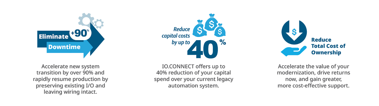 DeltaV™ IO.CONNECT helps plants securely and easily upgrade their legacy control system to DeltaV DCS while minimizing downtime and risks. Now, plants are empowered to flexibly use capital to reduce operating costs, drive immediate ROI, achieve digital transformation, and confidently prepare for the future.